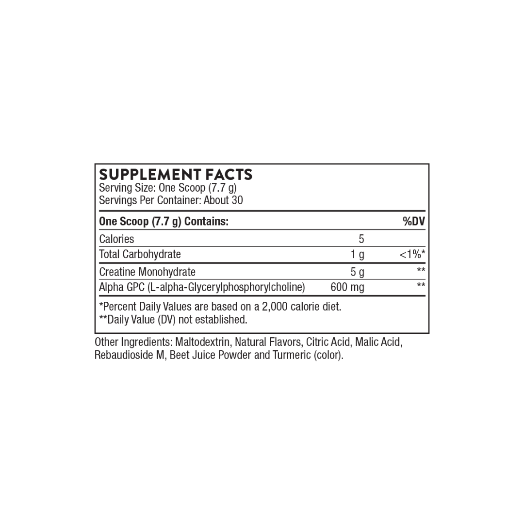 What it does: Creatine + Alpha GPC by Thorne Health is formulated to support training output, performance and post-session recovery. It fits seamlessly within a high-performance, health-first supplement routine.