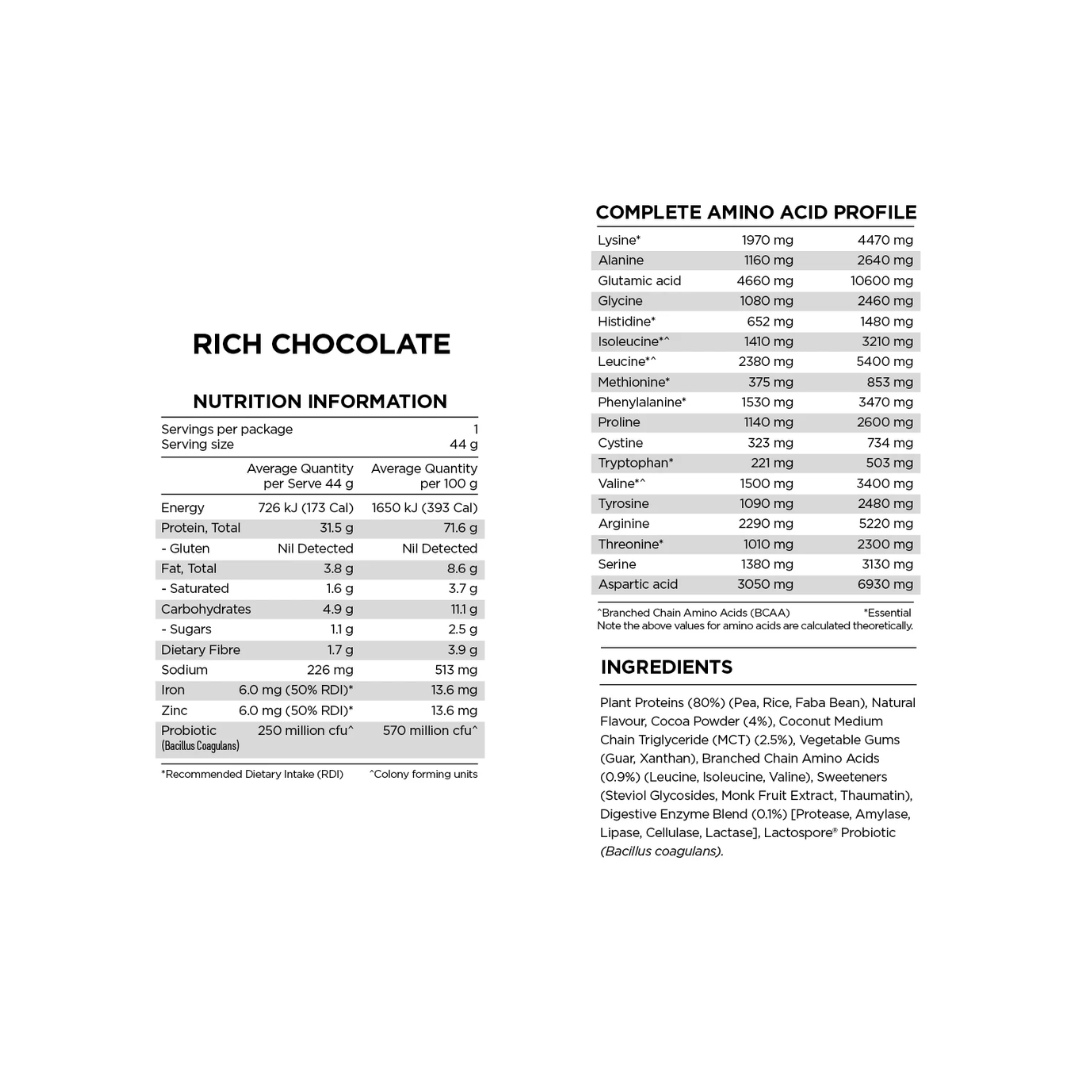 What it does: Plant Protein – Rich Chocolate by Powered By Plants is formulated to support protein intake, muscle recovery and satiety. It fits seamlessly within a high-performance, health-first supplement routine.