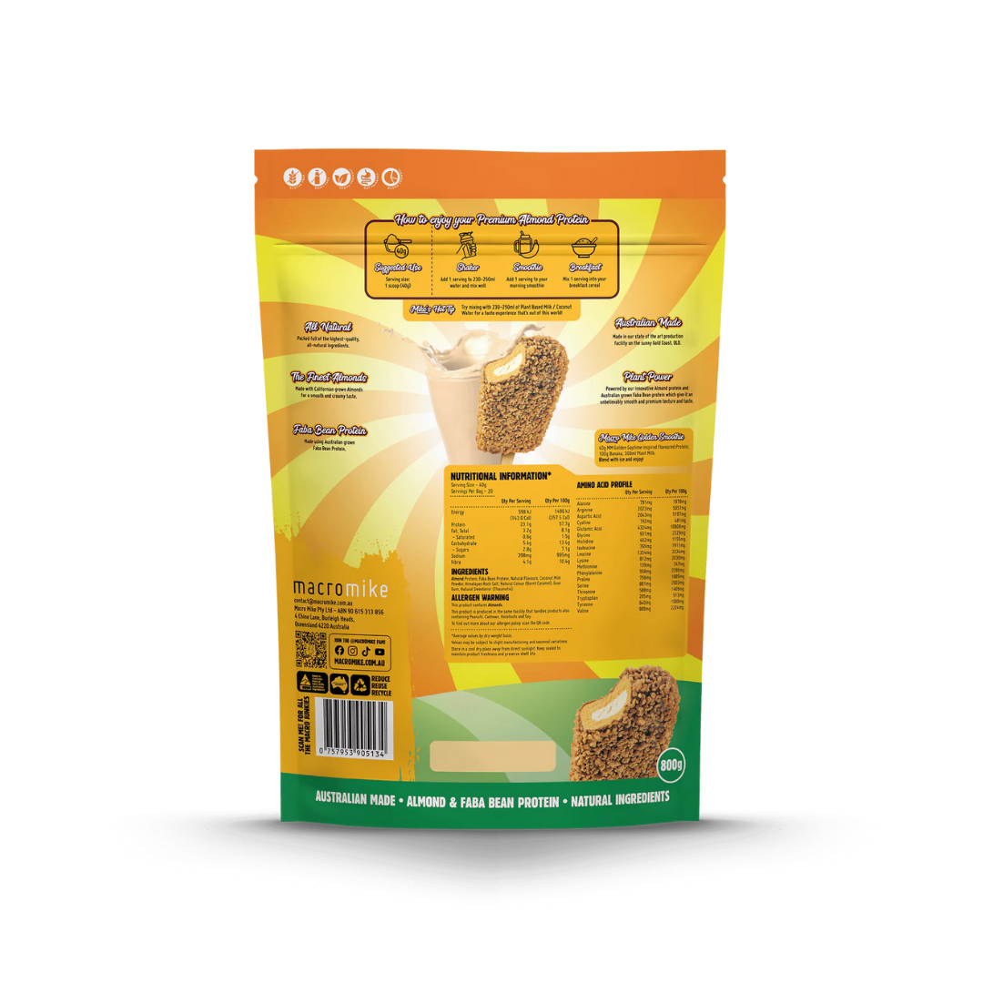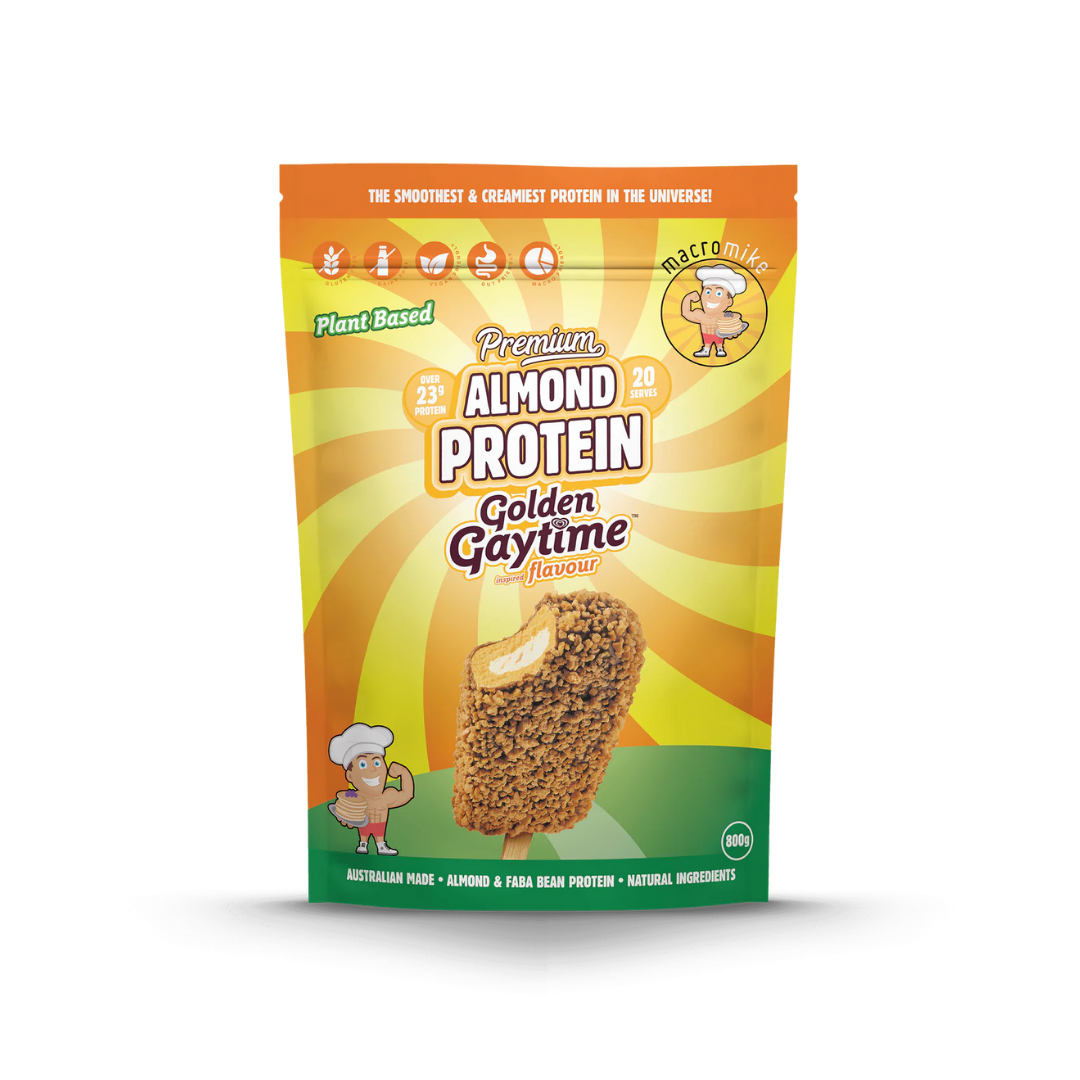 What it does: Protein – Golden Gaytime by Macro Mike is formulated to support protein intake, muscle recovery and satiety. It fits seamlessly within a high-performance, health-first supplement routine.